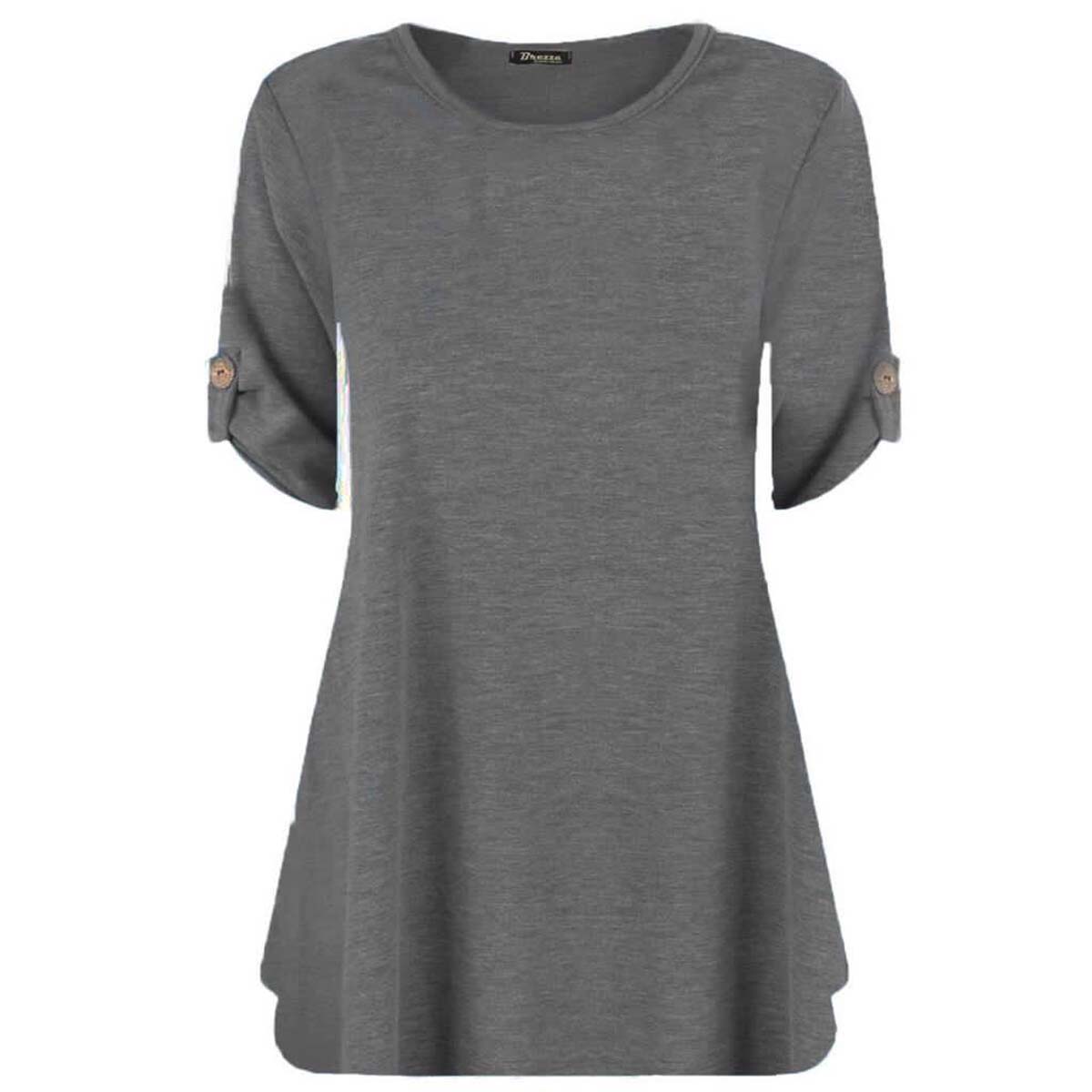 Women's TopPlain, Round NeckShort SleeveButton Detail at SleeveMaterial: 95% Viscose 5% ElastaneProduct No: 171