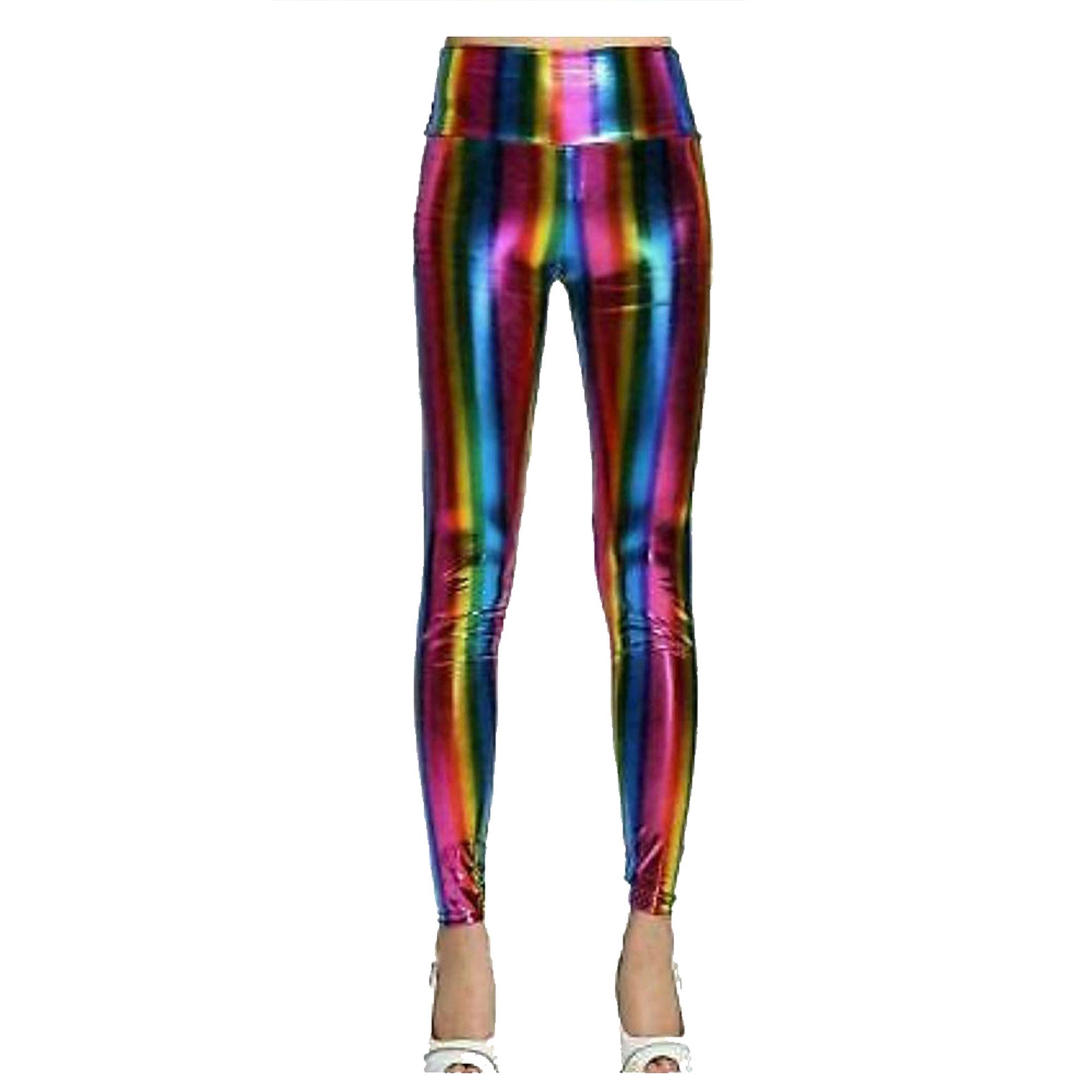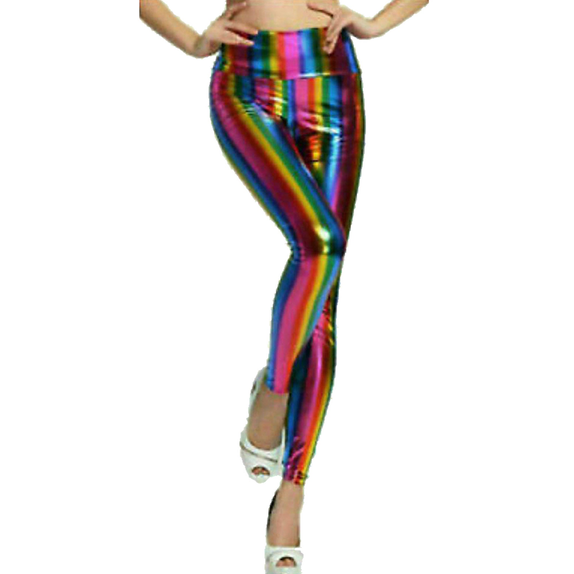 Women's Girl's Disco Leggings Metallic PVC Shiny Wet Look, Elasticated High Waist Material: Polyester Product No: 195