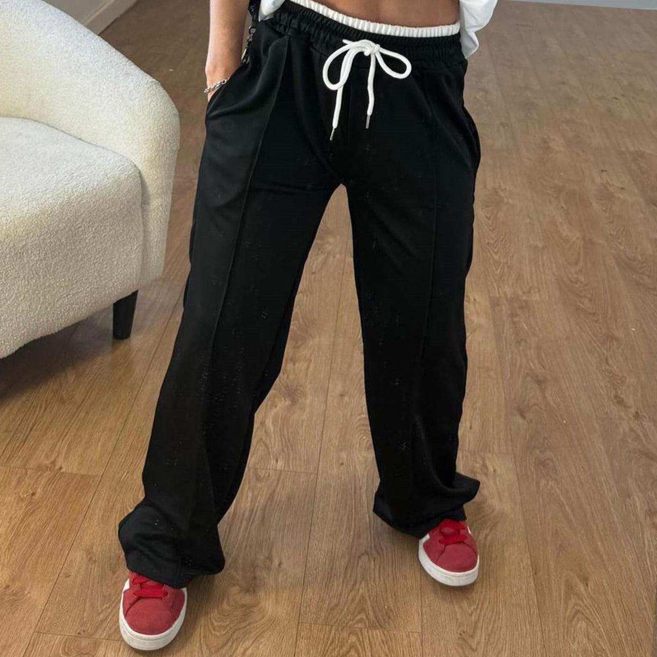 Wide-Leg Drawstring Pants