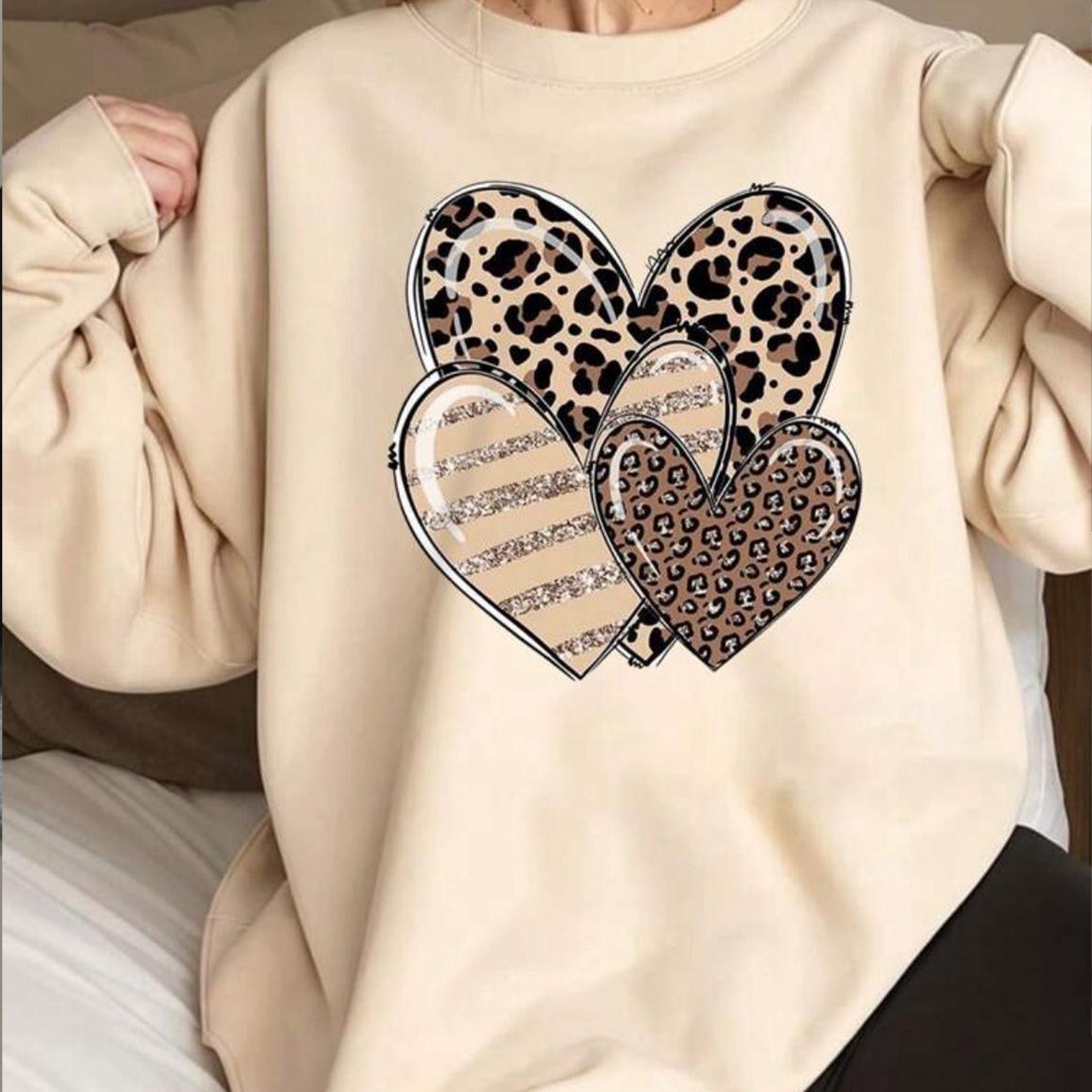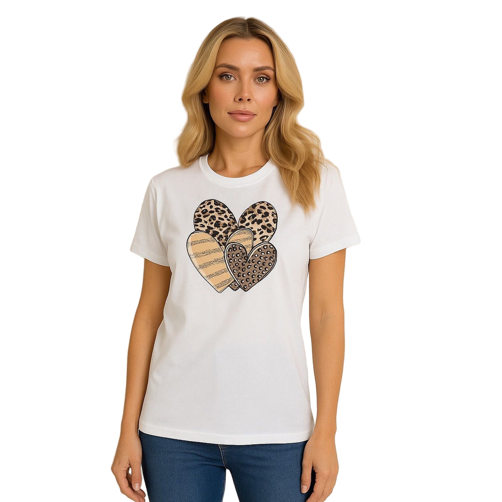 Women's Multi Hearts T-ShirtLeopard Print Multi HeartsShort Sleeve, Crew NeckMaterial: CottonProduct No: 538