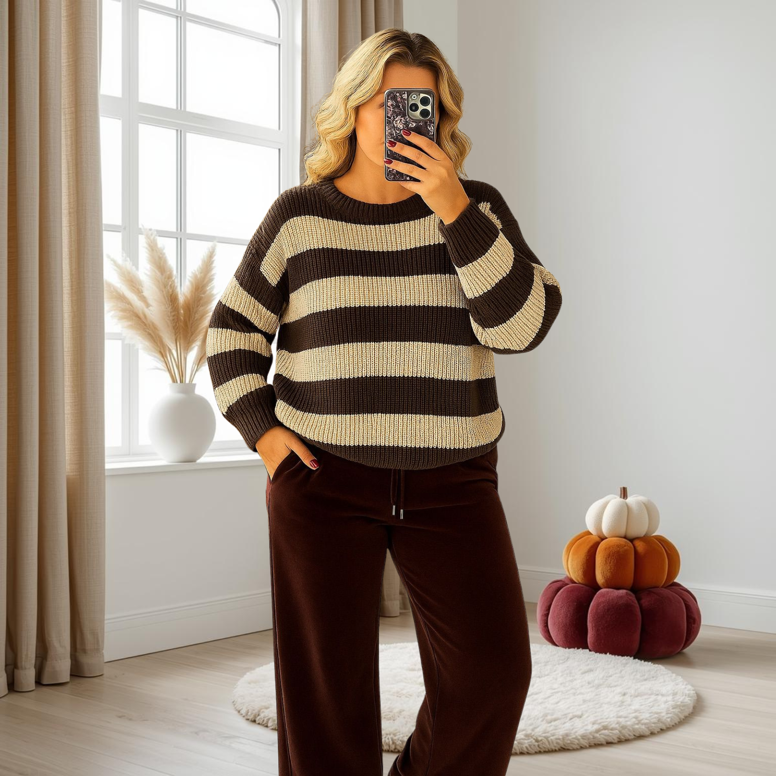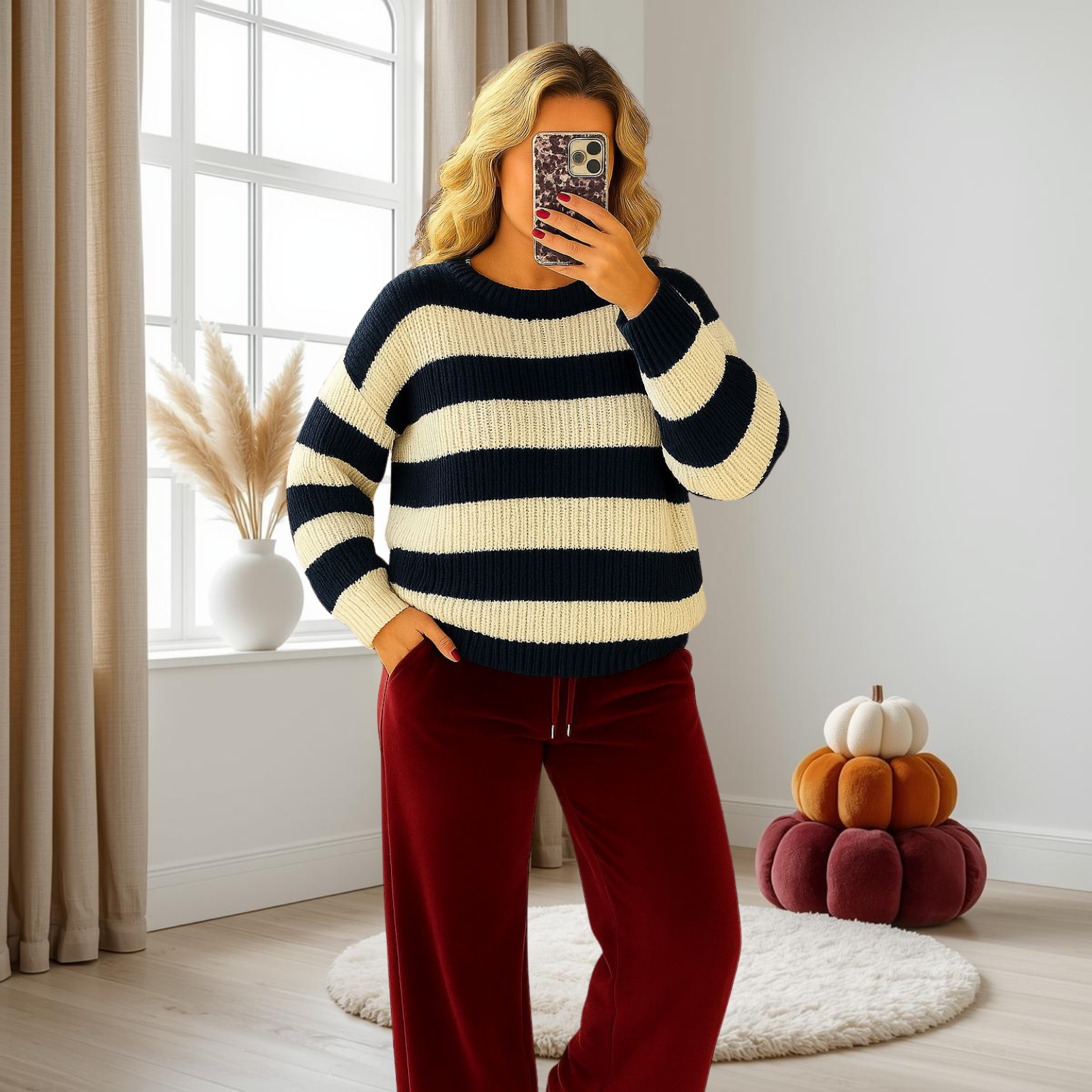 Ladies Long Sleeve JumperCrew Neck Knitted Stripe SweaterProduct No: 550